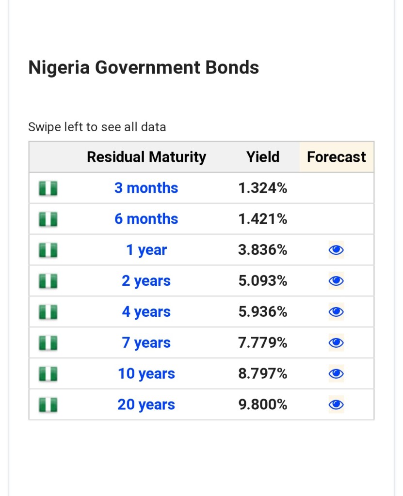 Banks deposit rates have plummeted, bonds and treasury bills yields have fallen to the lowest in decades, with the financial system awash with liquidity in search of safe havens.The reverse should’ve been the case at a time the government is on a borrowing spree, with annual inflation at 12.8 percent and the benchmark monetary policy rate set by the central bank at 12.5 percent, interest rates should also be in the double digits. To make matters worse, two devaluations implemented by the central bank since May have shaved about 20 percent off the value of the naira.